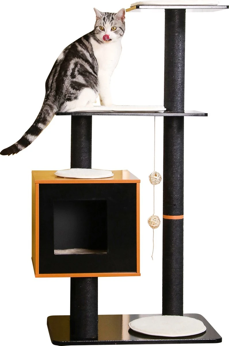 Door dit stijlvolle design en met zijn zwart/hout look is deze krabpaal een ware eye-catcher in ieder interieur.