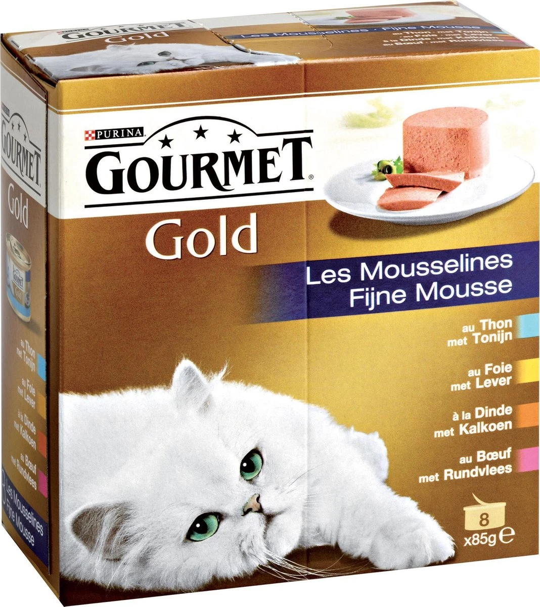 Uw kat is een echte fijnproever, die het liefst elke dag verschillende texturen en smaken probeert. Daarom heeft Gourmet gold fijne hapjes gemaakt, heerlijke recepten om zijn verfijnde smaak te verwennen met een nieuwe smaakbeleving in elke maaltijd. Zachte mousse met vlees of vis, met zorg bereid om uw kat te laten genieten van een delicate en overheerlijke sensatie.