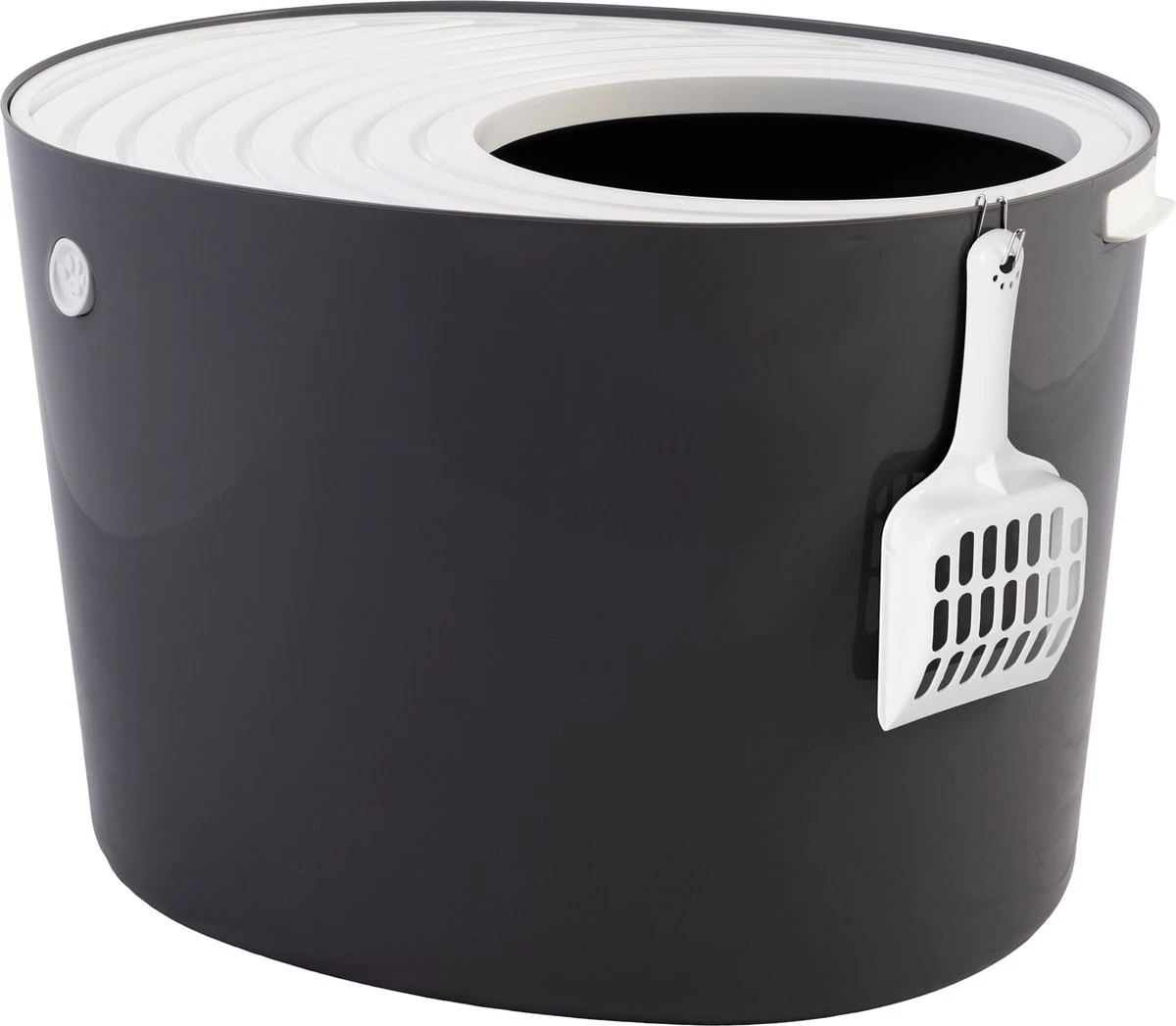 De Top Entry Kattenbak is een elegante kattenbak gemaakt van robuust plastic dat past bij elk interieur. Deze kattenbak is gemakkelijk schoon te maken met het inbegrepen schepje. De kattenbak is hoog en goed afgesloten zodat de kattenbakvulling in de kattenbak blijft. Uw interieur blijft altijd schoon doordat de deksel gegroefd afgedekt is. Zo blijven alle korreltjes netjes op de kattenbak wanneer uw kat de kattenbak verlaat. Ongewenste geuren blijven onopgemerkt doordat de kattenbak een diepte heeft van 37 centimeter. Zowel geschikt voor kleinere en grotere katten. Verkrijgbaar in de kleuren Grijs/Wit en Wit/Beige en Zwart/Grijs.