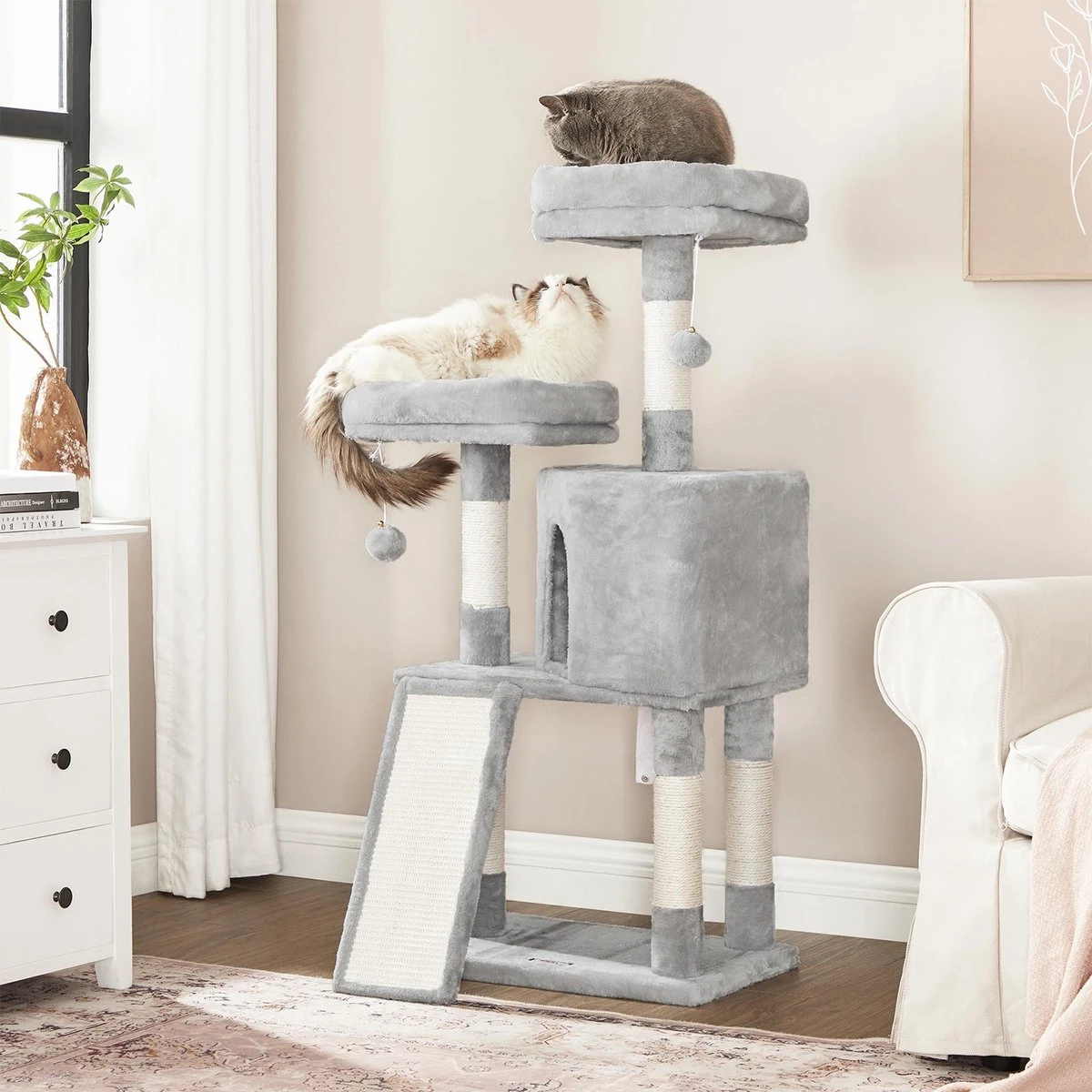De balletjes aan de krabpaal zorgen voor uren speelplezier en extra beweging. Daarnaast is deze krabpaal ideaal voor kleine woningen en appartementen vanwege het compacte formaat.