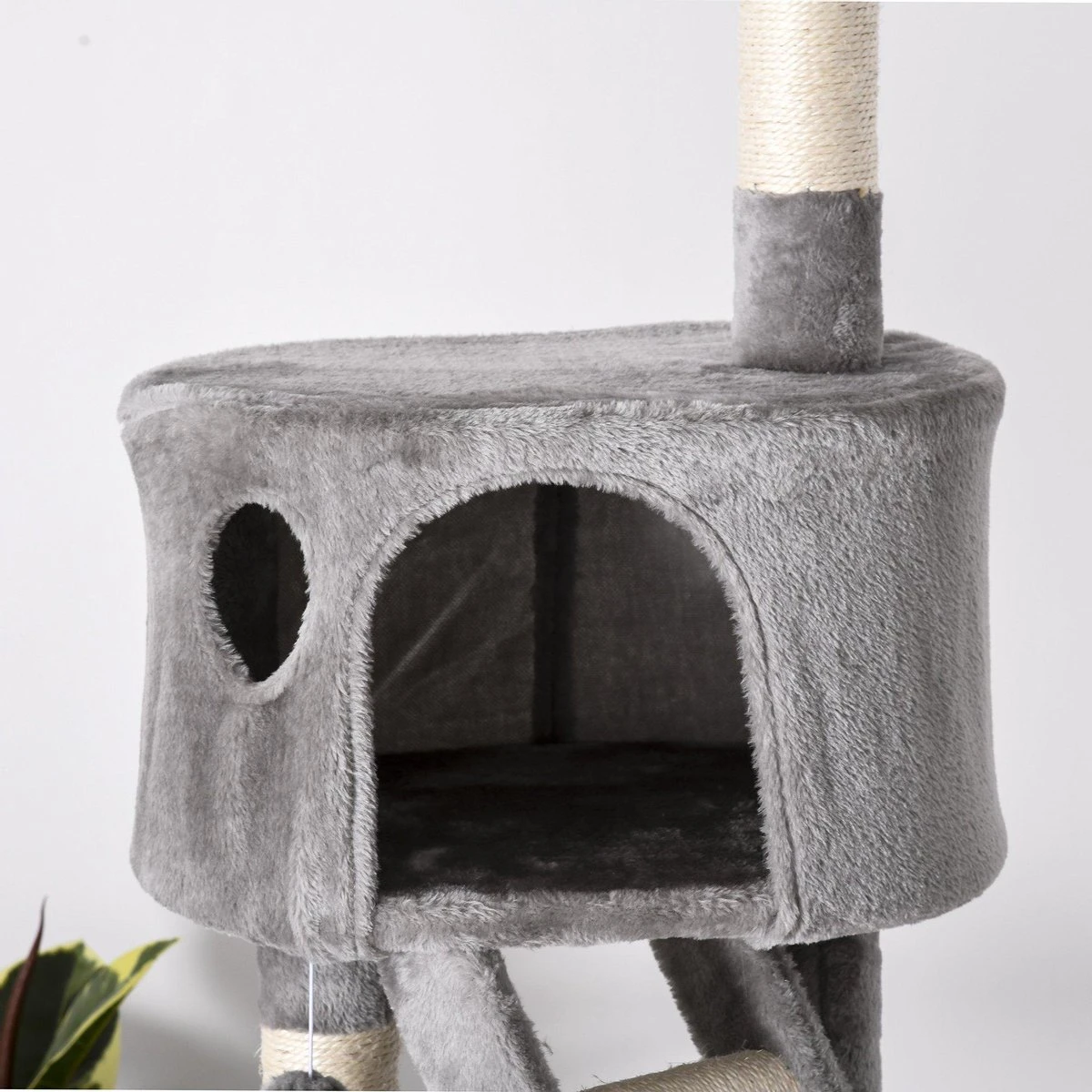 Design: Deze krabpaal met meerdere niveaus met meerdere platforms om te loungen en zonnebaden is de spinnende oplossing voor huizen met meer dan één speelse kat! De paal heeft krabplekken en geeft ze voldoende ruimte om te strekken en hun klauwen te oefenen.