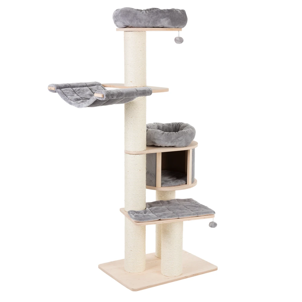 Het natuurlijke paradijs is het beste bewijs van het respect van je eigenaar voor wat en wie je bent: veel meer dan een huisdier. Je bent een geliefd familielid en je verdient een comfortabele en liefdevolle omgeving om je thuis te voelen. Dat is waar we ons best voor doen. We zorgen er graag voor dat het huis van je eigenaar je natuurlijke habitat wordt. Zo kun je altijd jezelf zijn en je natuurlijke instincten volgen. . NATURAL PARADISE. DESIGNED FOR NATURAL INSTINCTS. Wie heeft er behoefte aan buiten zijn als je thuis zo’n indrukwekkende krabpaal van echt hout hebt staan? Het is veel gezelliger binnen je eigen vier muren. Het kattenmeubel ziet er super stevig en stabiel uit. De boom zal niet omvallen, zelfs niet als er meerdere katten op ravotten. Natuurlijk kunnen je katten het zich ook alleen gemakkelijk maken. Je kat kan kiezen uit verschillende ligplaatsen en ze zijn niet zo strak gedimensioneerd als bij andere krabpalen. Nee, de katten die wat meer ruimte nodig hebben om zich prettig te voelen, zijn hier eindelijk aan bod gekomen! Een echt hoogtepunt zijn de extra dikke sisalstammen, die geweldig zijn om te klimmen, te strekken en klauwen te scherpen. En als alles te veel wordt voor je kat en hij zijn rust wilt hebben, kan je kat zich gewoon verstoppen in het gezellige huisje. Krabpaal Natural Paradise Magnolia XL in één overzicht: Ideaal voor grote en zwaardere katten Knuffelzacht pluche samen met natuurlijk hout Met extra dikke sisalstammen en grote ligvlakken Alle platen uit onbehandelde echthout (Multiplex) Alle houtplaten komen uit de bosbouwkundige praktijk Afneembare en tot 30°C wasbare vulling en kussen (100% polyester): zorgen voor een eenvoudige reiniging Made in Georgia Kleur: creme Materiaal: Hout: Baltisch berkenmultiplex (uit duurzame bosbouw). Krabstammen: omwikkeld met natuurlijk sisal Vulling: 100% polyester (Oeko-Tex® Standaard 100) Totale afmetingen (benodigde ruimte): H 175 x L 105 x B 90 cm Alle vullingen en kussens: Overtrek: Pluche (100% Polyester) Vulling: zachte wattenvlies Afneembaar Wasbaar tot 30°C (Wasmachine) 1 Bodemplaat: L 70 x B 50 x H 2,5 cm Met kunststofvoeten 1 Ligplaats: Afmeting: L 55 x B 38 cm 1 Hol: Buitenkant ca. Ø 45 x H 28 cm Binnenkant ca. Ø 38 x H 25 cm 1 Kussen binnenkant: ca. Ø 38 cm Buitenkant met pluchebekleding 2 Knuffelbedjes: Ca. Ø 47 x H 11 cm Afmeting: ca. 27 cm 1 Hangmat: Met Houtframe Afmeting ligvlak: ca. L 42 cm x B 35 cm 3 Speeltjes: uit pluche (100% Polyester) 6 Sisalstammen: Ø 15 cm 1 x 55 cm 4 x 40 cm 1 x 35 cm Wandligbed Natural Paradise: Wanddrager met bekleed knuffelbed Massieve echthout-plaat uit onbehandelde multiplex Afneembaar en tot 30°C wasbare vulling: zorgt voor een eenvoudige reiniging Eenvoudig aan de muur te monteren (Montagemateriaal is niet inclusief) Afmeting: ca. B 45 x T 42 x H 21 cm Wanddrager: Maat: B 45 x T 42 x H 13 cm Materiaal: Echthout (Multiplex) Kleur: natuurlijk Knuffelbed met rand: Afmeting: ca. Ø 48 x H 8 cm Ligvlak: ca. Ø 36 cm Materiaal: 100 % Polyester Fixeerbaar dmv klittenband Kleur: creme Let op: alleen voor gebruik binnenshuis. De krabpaal Natural Paradise Magnolia XL past ideaal bij: zoolove Krabpaal XXL Krabpaal Natural Paradise Jumbo XXL Krabton Natural Paradise XXL Krabstam Natural Paradise XXL Krabpaal Natural Paradise L Krabpaal Natural Paradise XL Compact Krabpaal Natural Paradise XL Premium Edition Wandligbed Natural Paradise