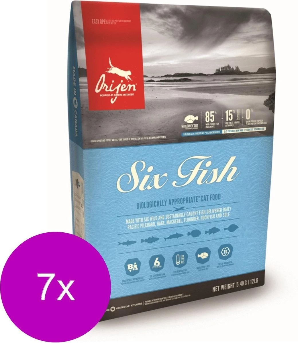 Orijen Six Fish is bereid met ingrediënten uit wilde en duurzaam gevangen vis uit Canada’s koude wateren. Deze worden dagelijks vers en geheel aangeleverd, rijk aan voedingsstoffen en smaak. In de keukens van Orijen wordt de Whole pray 6 bereid om je kat gezond, blij en sterk te houden.
