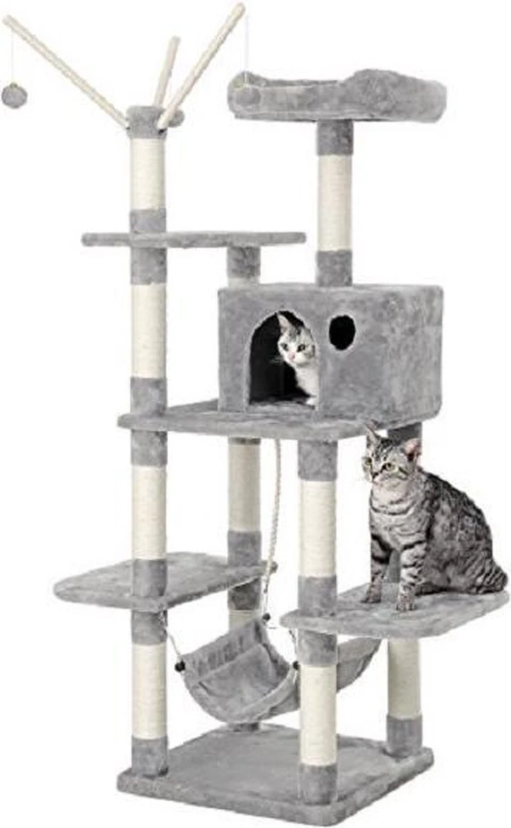 Songmics Feandrea Kattenboom Lichtgrijs XL – Krabpaal 154cm – Klimboom Met Hangmat