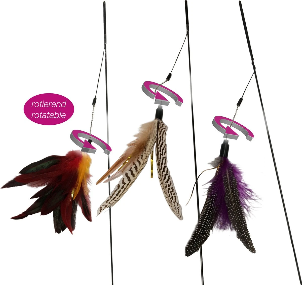 De kattenhengels worden per 1 stuk verkocht en worden willekeurig geleverd.